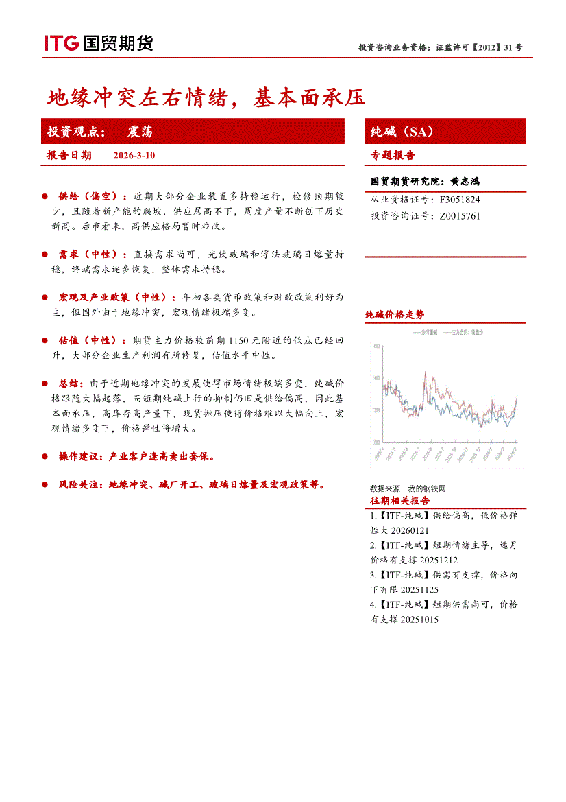 国贸期货-纯碱(SA)专题报告:地缘冲突左右情绪,基本面承压-260310