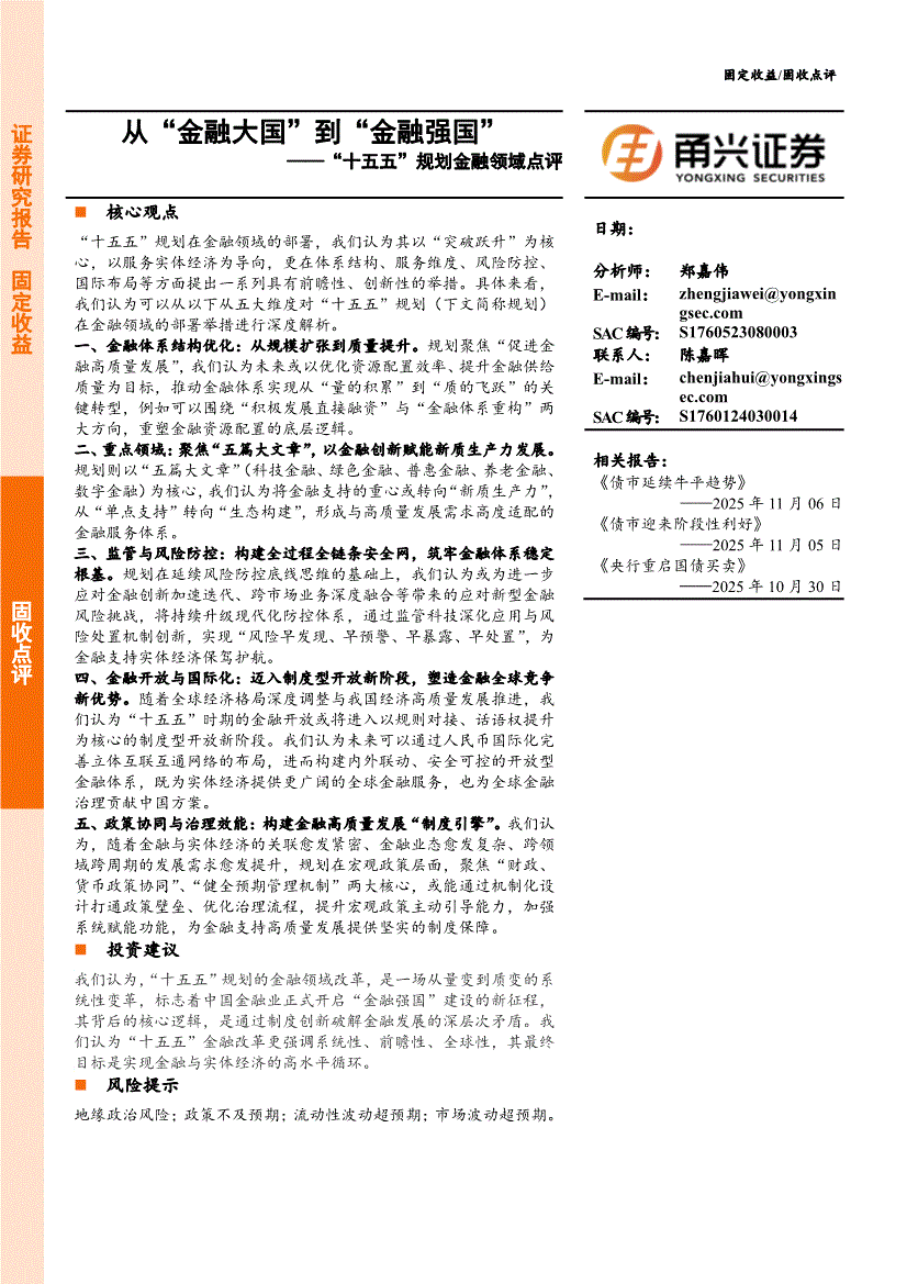 甬兴证券-“十五五”规划金融领域点评:从“金融大国”到“金融强国”-251111