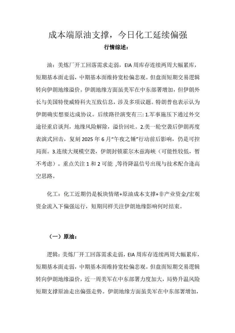 天富期货-原油回归过剩逻辑驱动,化工品后续仍是分化对待-260107