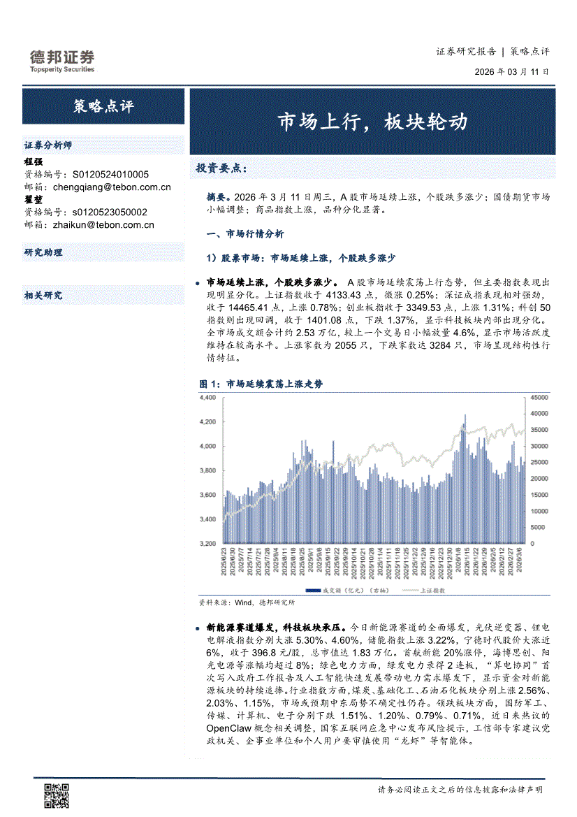 德邦证券-策略点评:市场上行,板块轮动-260311