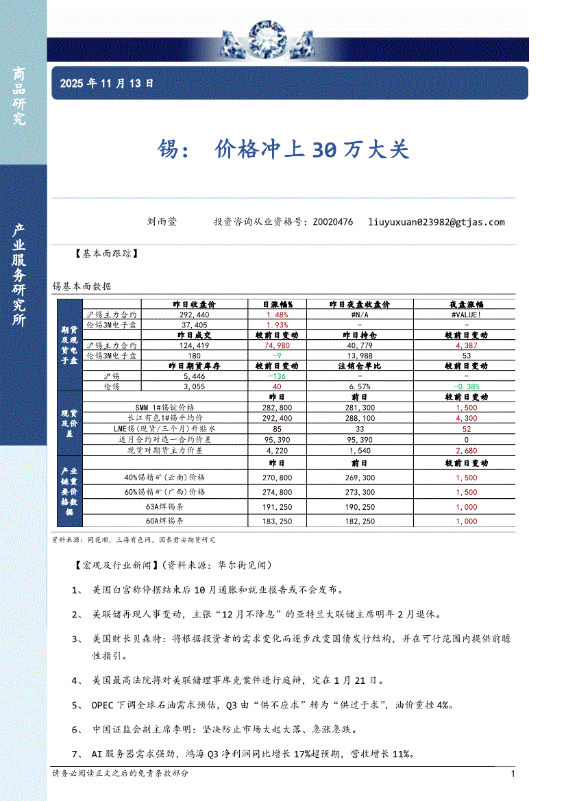 国泰君安期货-有色及贵金属日度数据简报-251114