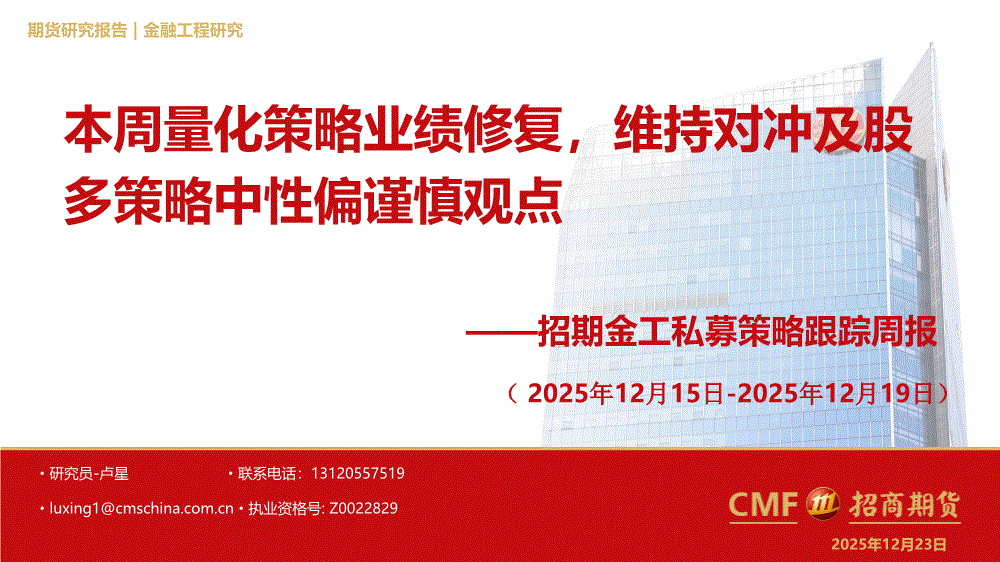 招商期货-金工私募策略跟踪周报:本周量化策略业绩修复,维持对冲及股多策略中性偏谨慎观点-251223