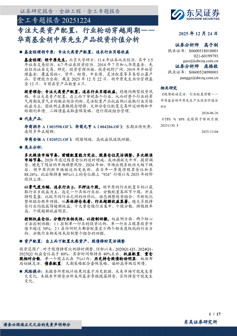 东吴证券-金工专题报告:专注大类资产配置,行业轮动穿越周期——华商基金胡中原先生产品投资价值分析-251224