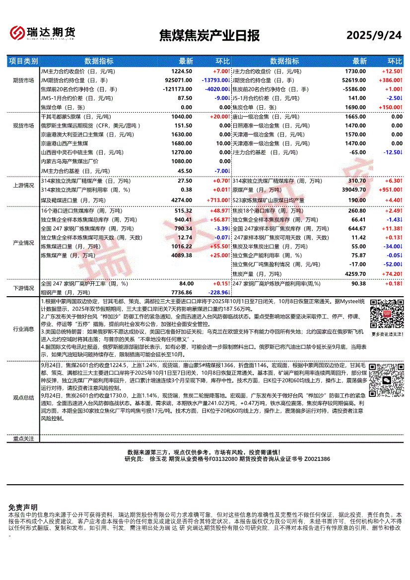 瑞达期货-焦煤市场周报:盘面受反内卷扰动,库存中性支撑价格-250919