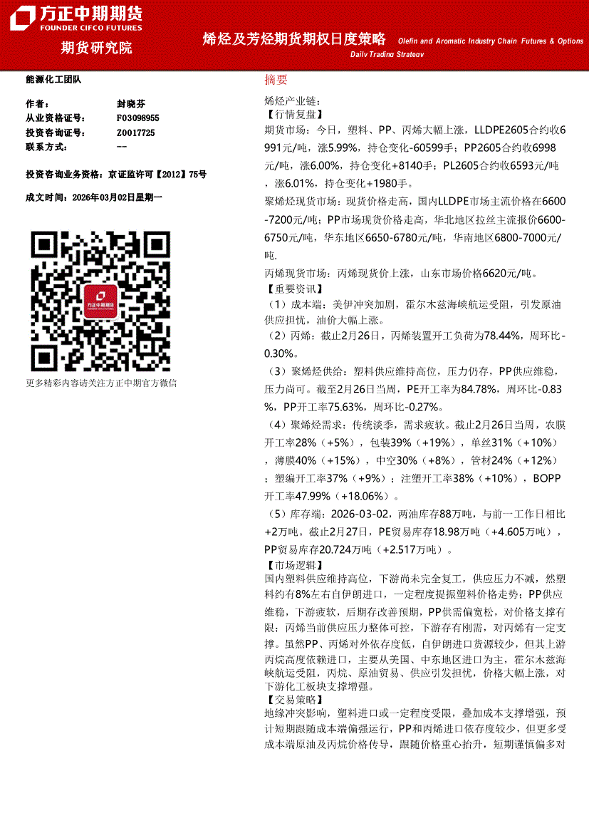 方正中期期货-烯烃及芳烃期货期权日度策略-260303