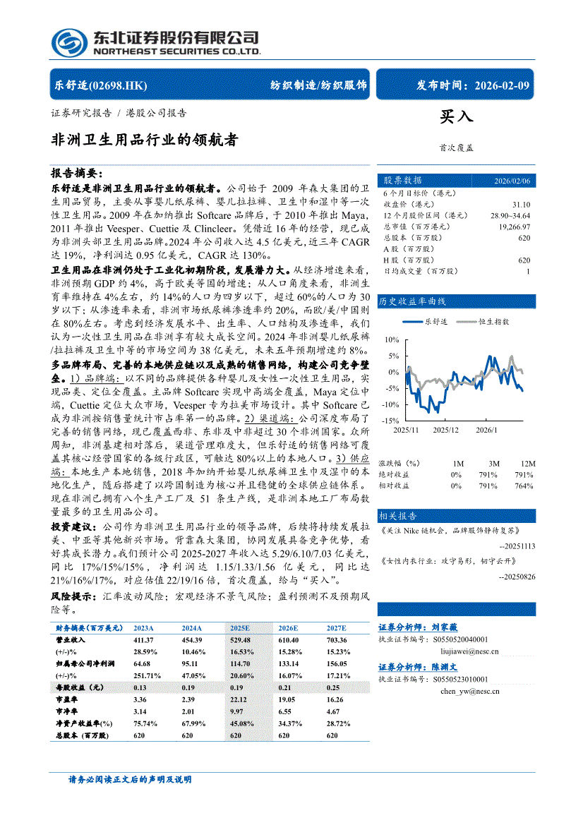 乐舒适:东北证券-乐舒适-2698.HK-非洲卫生用品行业的领航者-260209