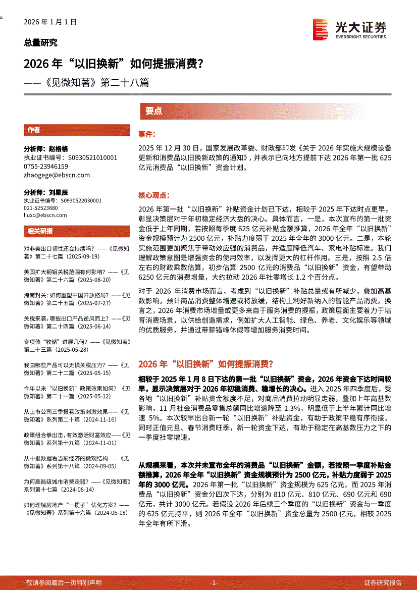 光大证券-《见微知著》第二十八篇:2026年“以旧换新”如何提振消费?-260101