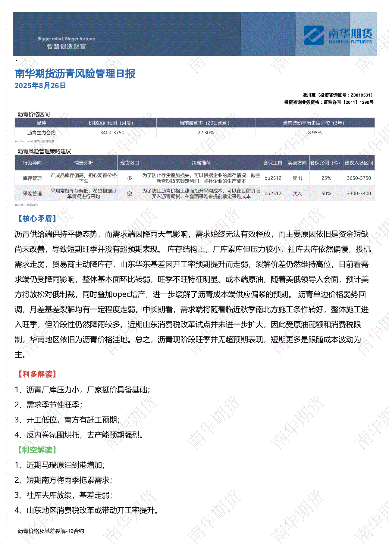 南华期货-沥青风险管理日报-250826