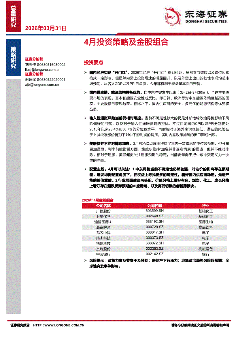 东海证券-4月投资策略及金股组合-260331