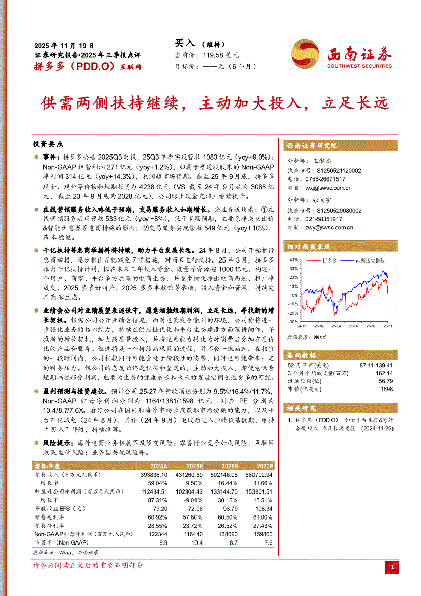拼多多:西南证券-拼多多-PDD.US-供需两侧扶持继续,主动加大投入,立足长远-251119