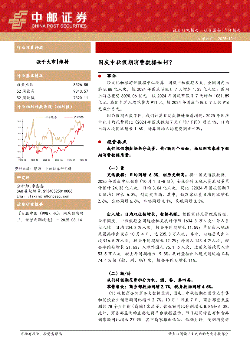 社会服务行业:中邮证券-社会服务行业点评报告:国庆中秋假期消费数据如何?-251011