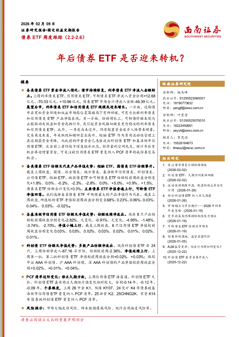 西南证券-债券ETF周度跟踪(2.2~2.6):年后债券ETF是否迎来转机?-260209