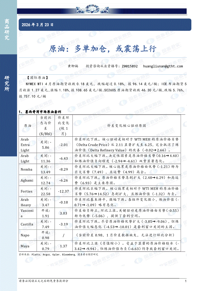 国泰君安期货-原油:多单加仓,或震荡上行-260323