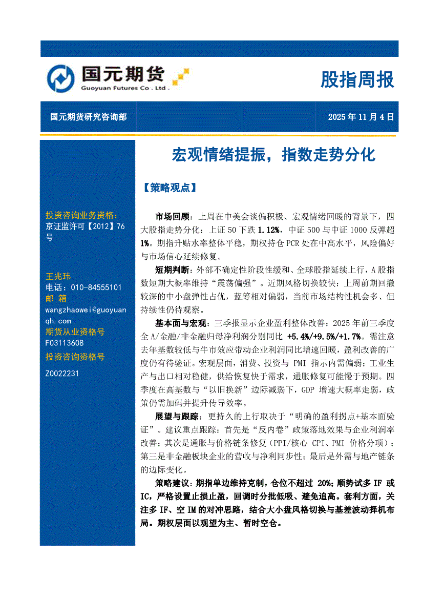 国元期货-股指周报:宏观情绪提振,指数走势分化-251104
