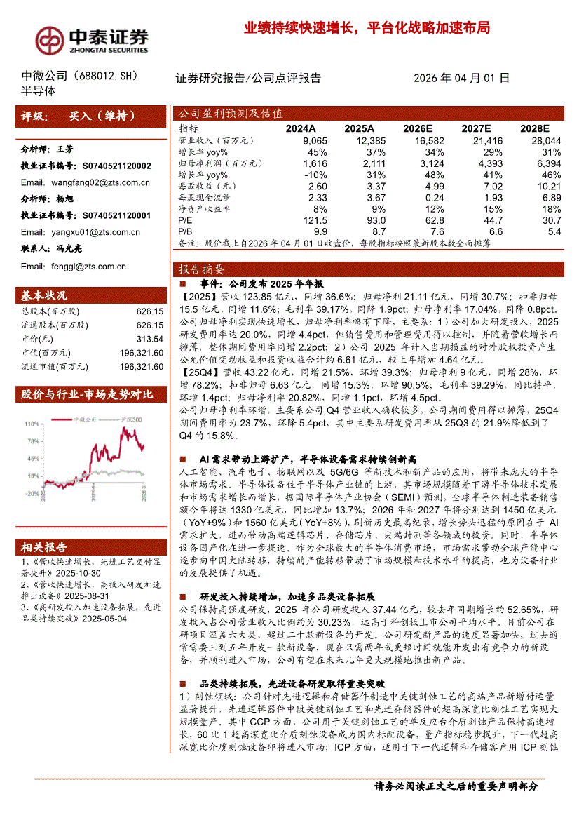 中微公司:中泰证券-中微公司-688012-业绩持续快速增长,平台化战略加速布局-260401
