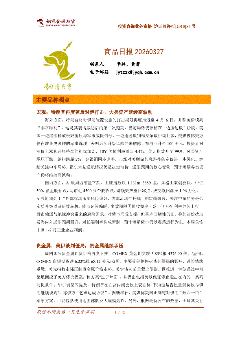 铜冠金源期货-商品日报-260327