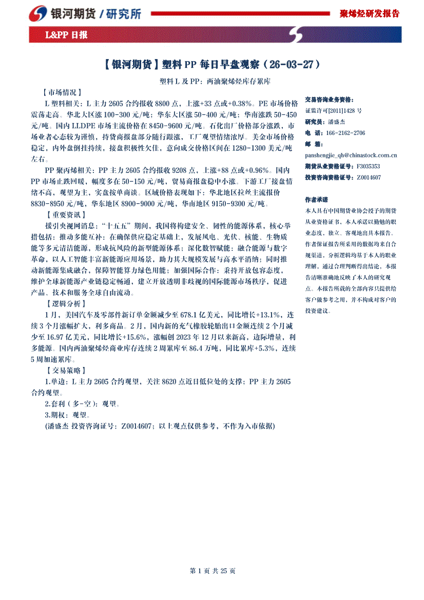 银河期货-塑料PP每日早盘观察-260325