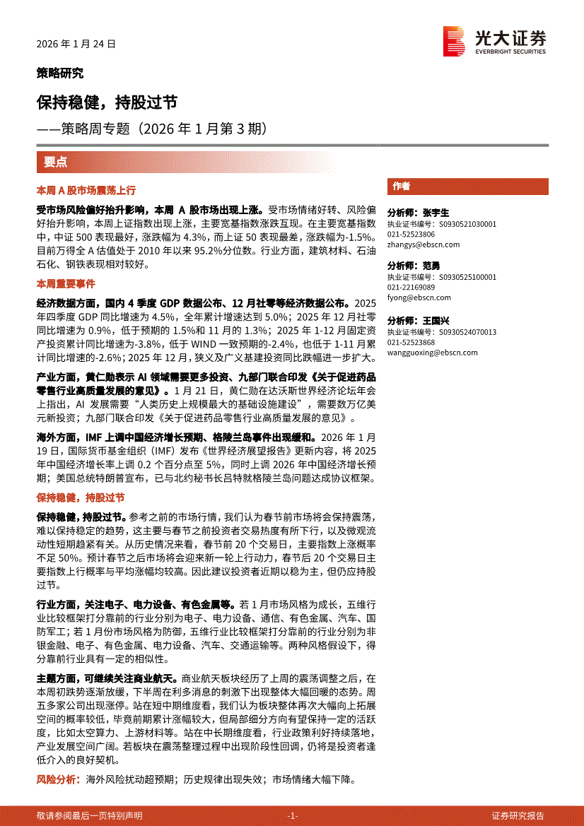 光大证券-策略周专题(2026年1月第3期):保持稳健,持股过节-260124