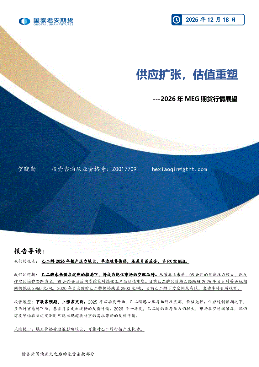 国泰君安期货-2026年MEG期货行情展望:供应扩张,估值重塑-251218