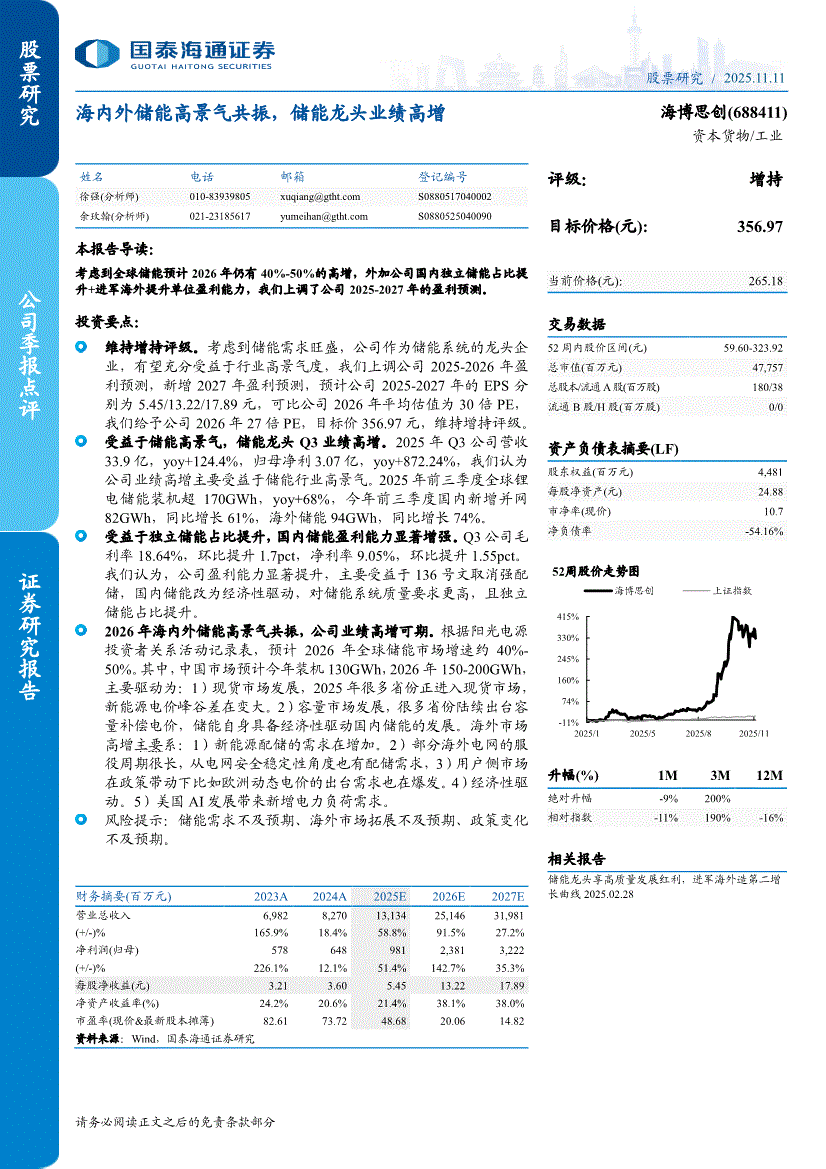海博思创:国泰海通证券-海博思创-688411-海内外储能高景气共振,储能龙头业绩高增-251111