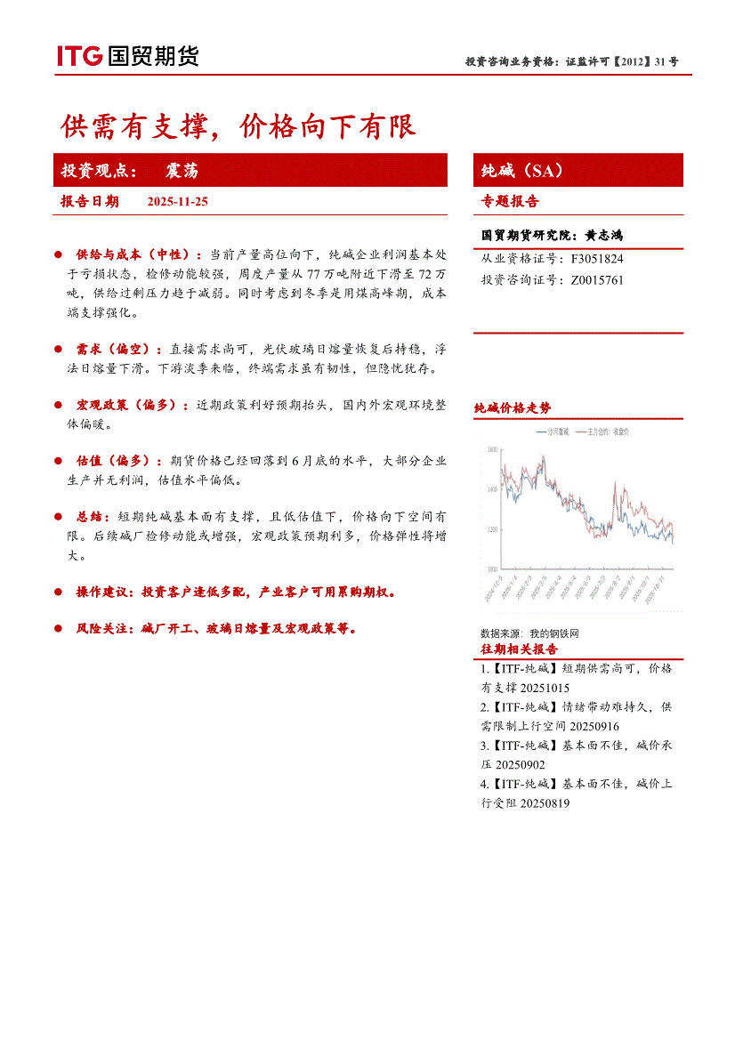 国贸期货-【玻璃纯碱(FG&SA)】:资金博弈剧烈,价格承压下行-251124