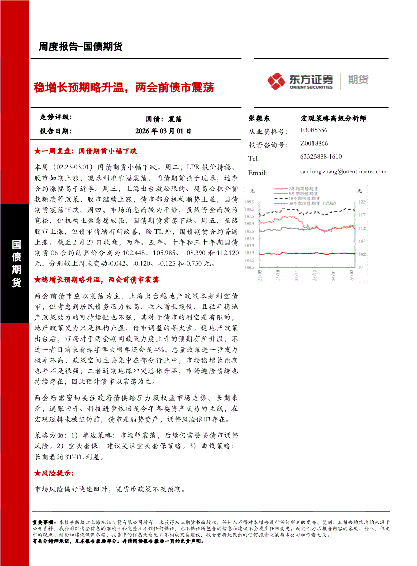 东证期货-国债期货周度报告:稳增长预期略升温,两会前债市震荡-260301
