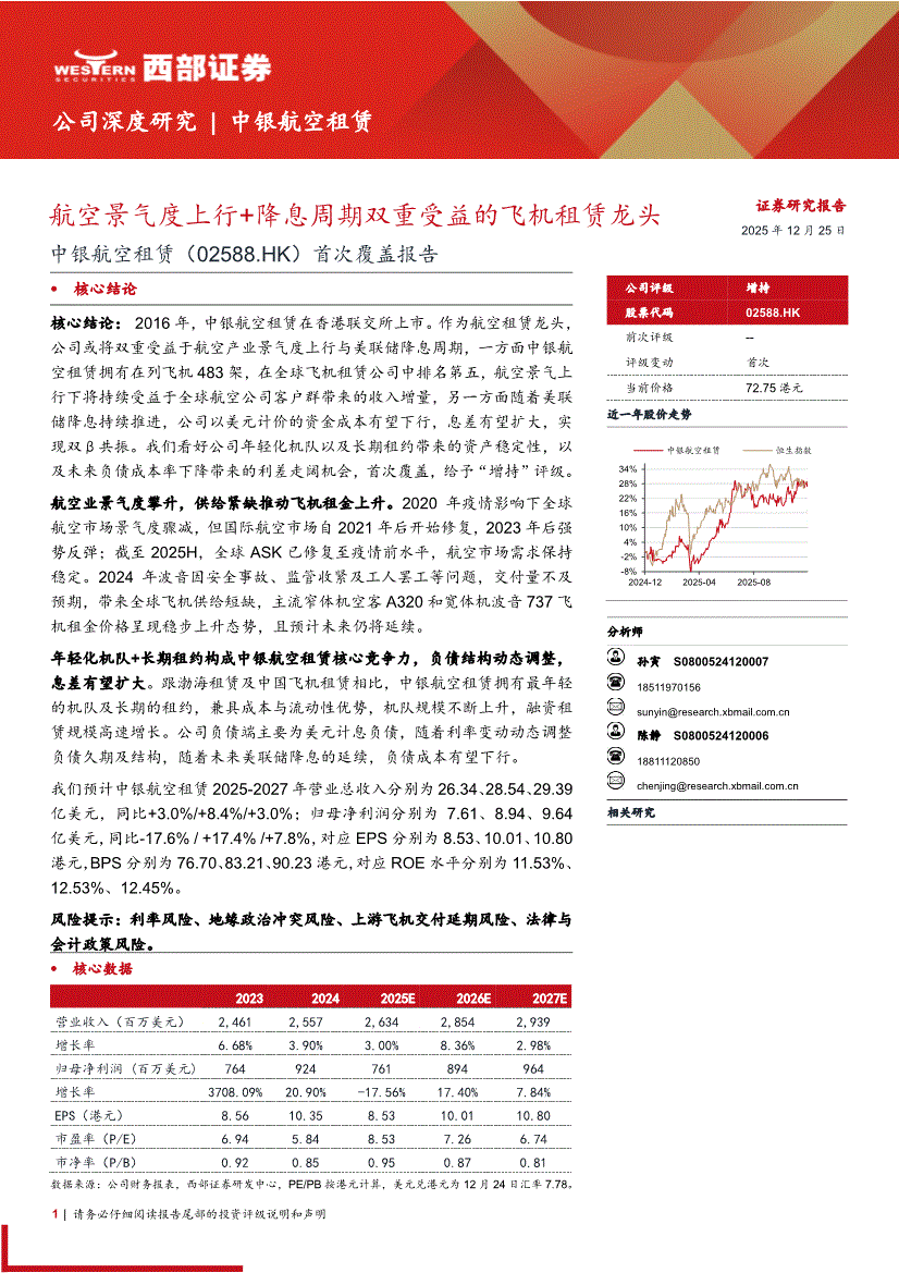 中银航空租赁:西部证券-中银航空租赁-2588.HK-首次覆盖报告:航空景气度上行+降息周期双重受益的飞机租赁龙头-251225