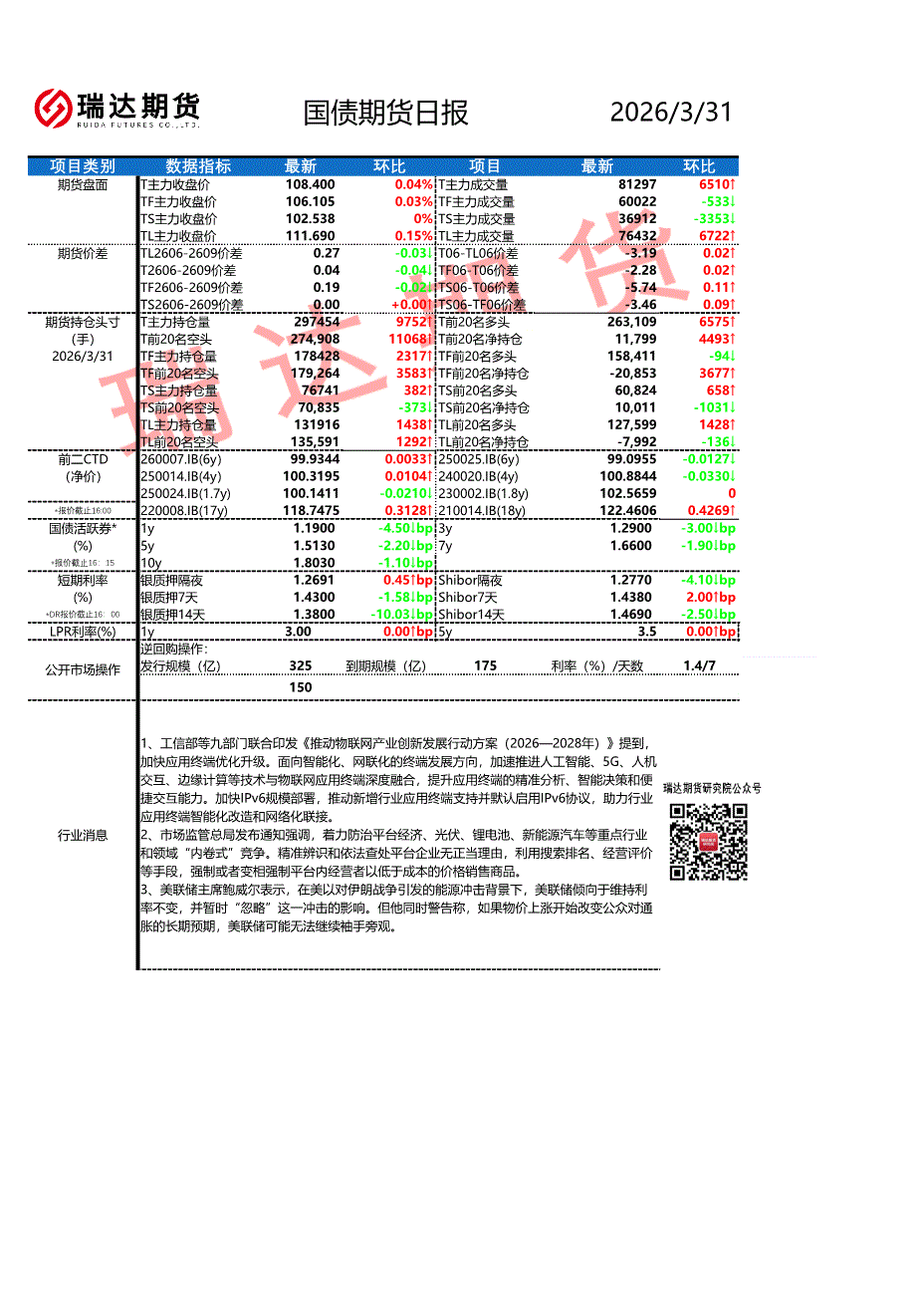 瑞达期货-国债期货日报-260331