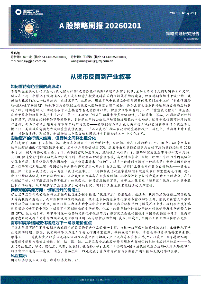 国金证券-A股策略周报:从货币反面到产业叙事-260201