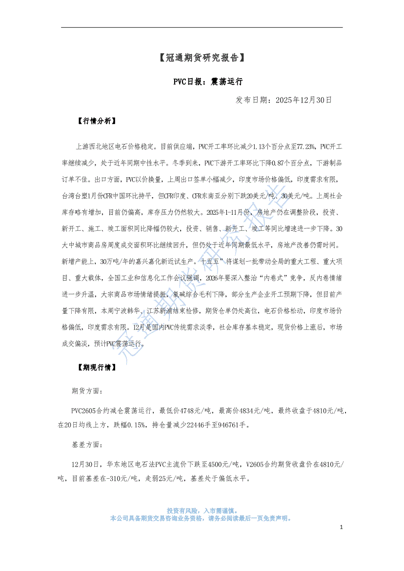 冠通期货-PVC2026年报:供给有望收缩,PVC价格反弹可期-251229