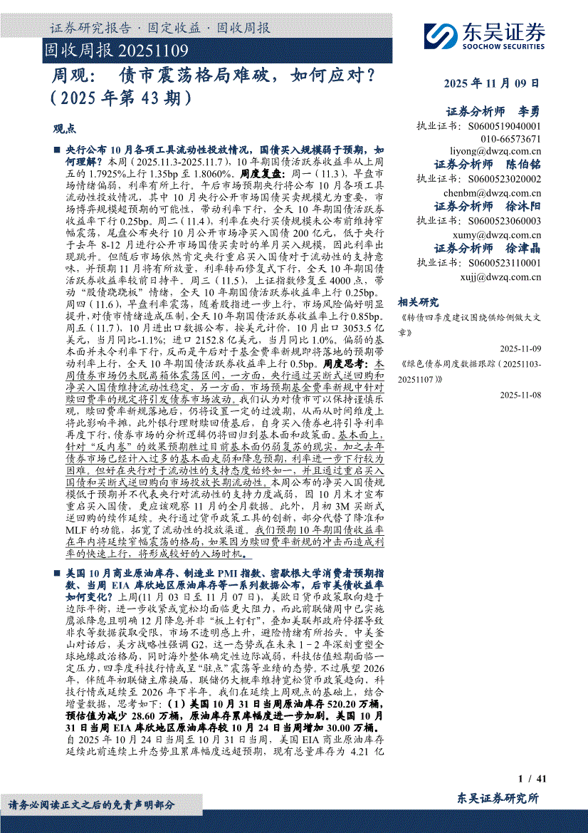 东吴证券-固收周报:周观,债市震荡格局难破,如何应对?(2025年第43期)-251109