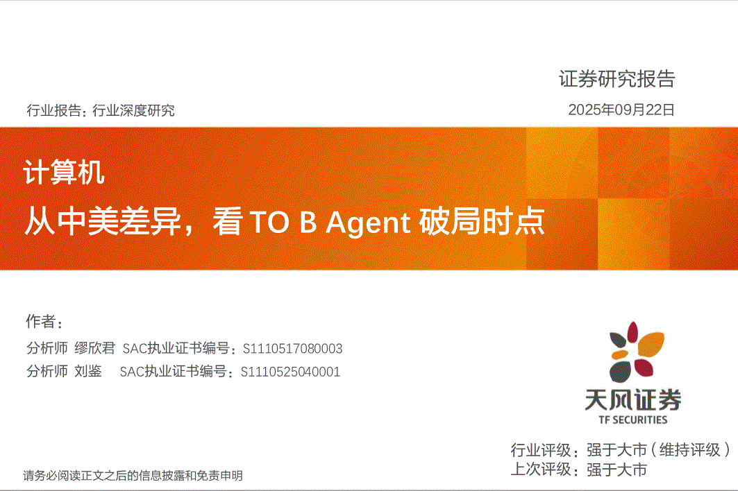 计算机行业:天风证券-计算机行业:从中美差异,看TO B Agent破局时点-250922