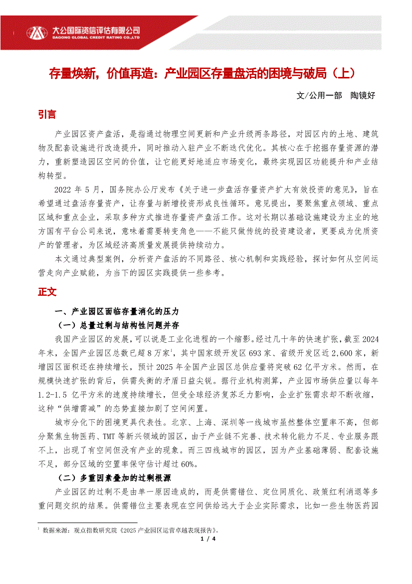 产业园行业:大公国际-产业园行业:存量焕新,价值再造,产业园区存量盘活的困境与破局(上)-260402
