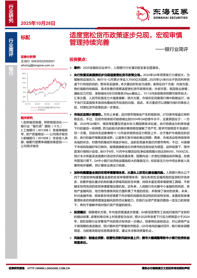 银行业:东海证券-银行业简评:适度宽松货币政策逐步兑现,宏观审慎管理持续完善-251028