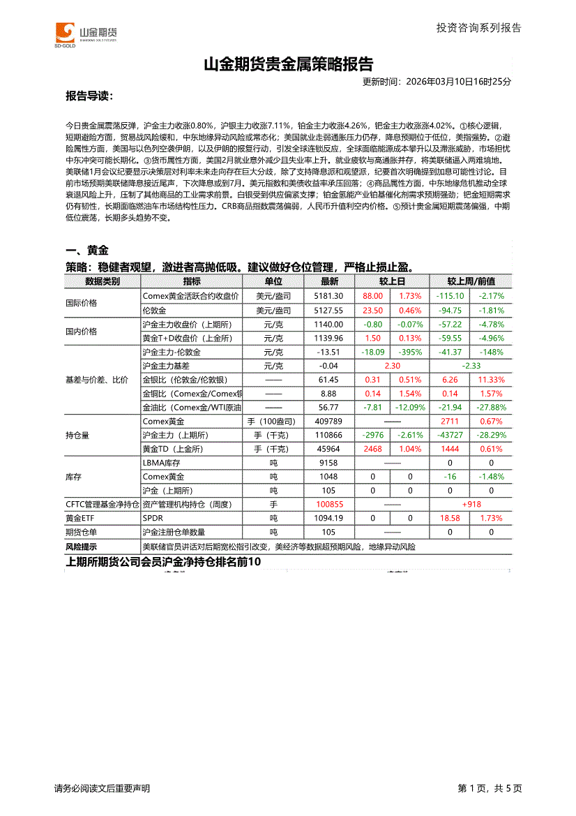 山金期货-贵金属策略报告-260310