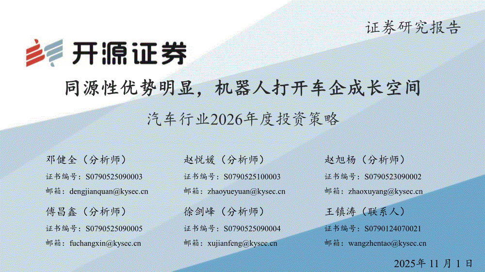 汽车行业:开源证券-汽车行业2026年度投资策略:同源性优势明显,机器人打开车企成长空间-251101