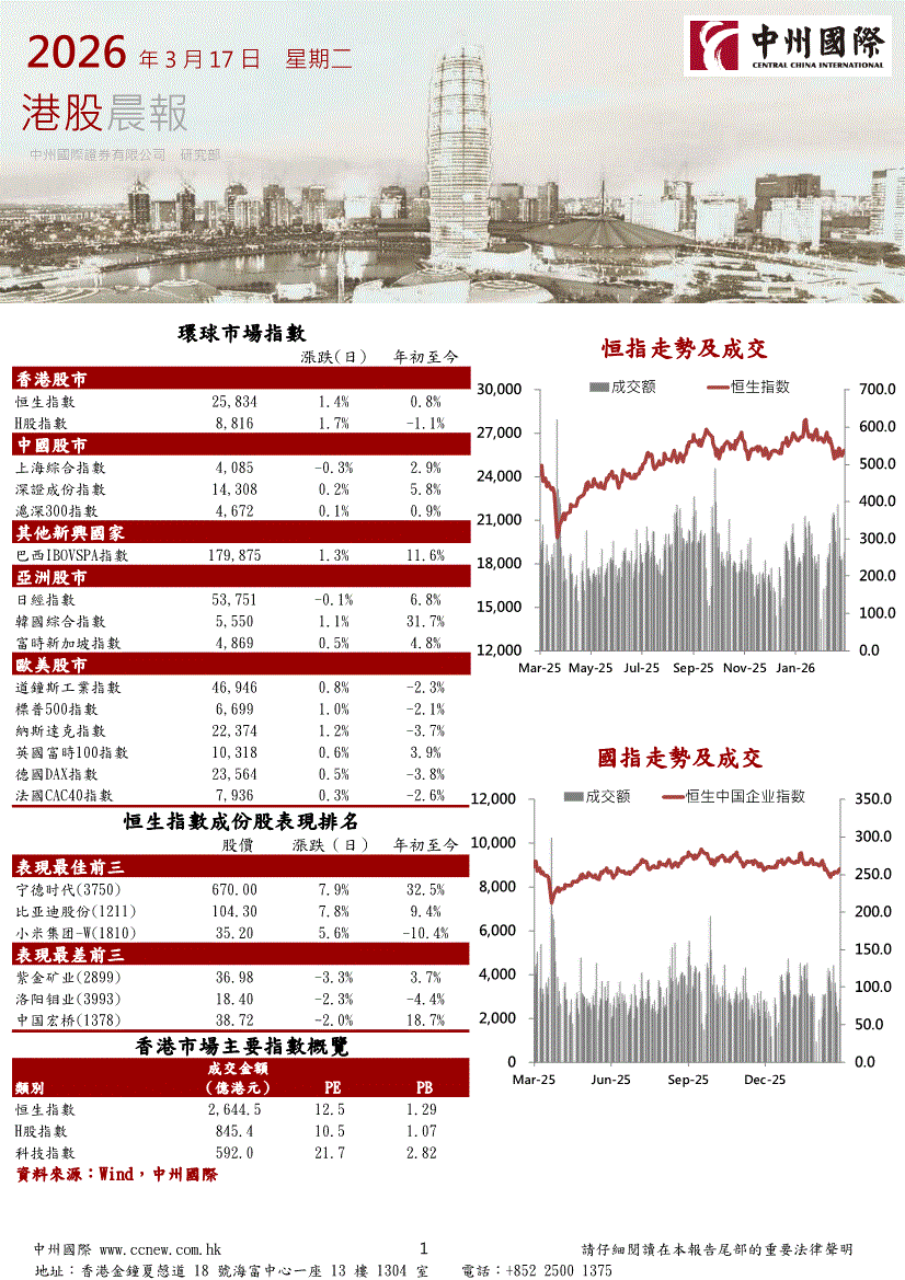 新华汇富-汇富快讯:香港及中國市場日報-260317