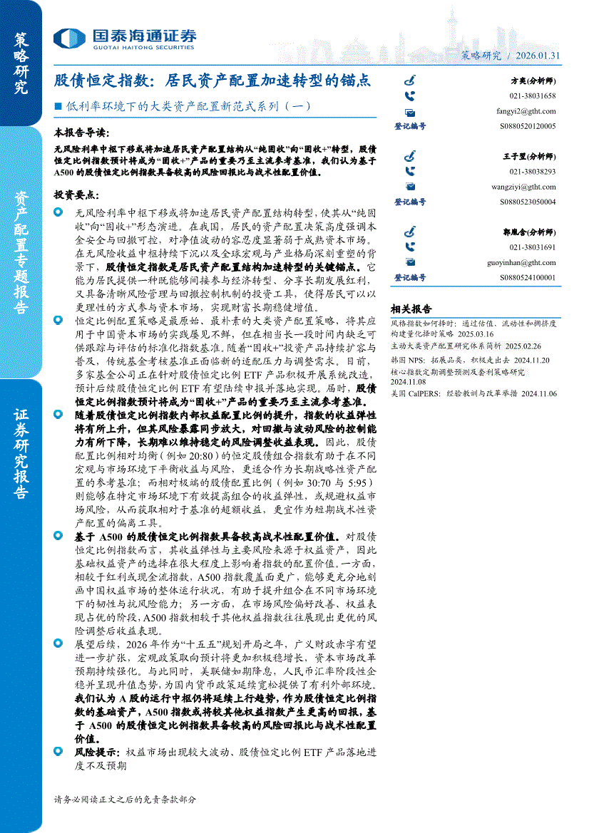国泰海通证券-低利率环境下的大类资产配置新范式系列(一):股债恒定指数,居民资产配置加速转型的锚点-260131
