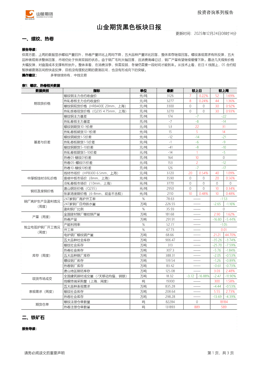 山金期货-螺纹热卷2025年12月月报:弱现实逐步兑现,螺纹热卷有望探底回升-251202