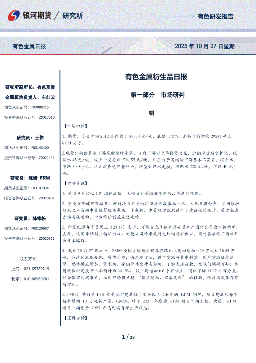 银河期货-有色金属衍生品日报-251027