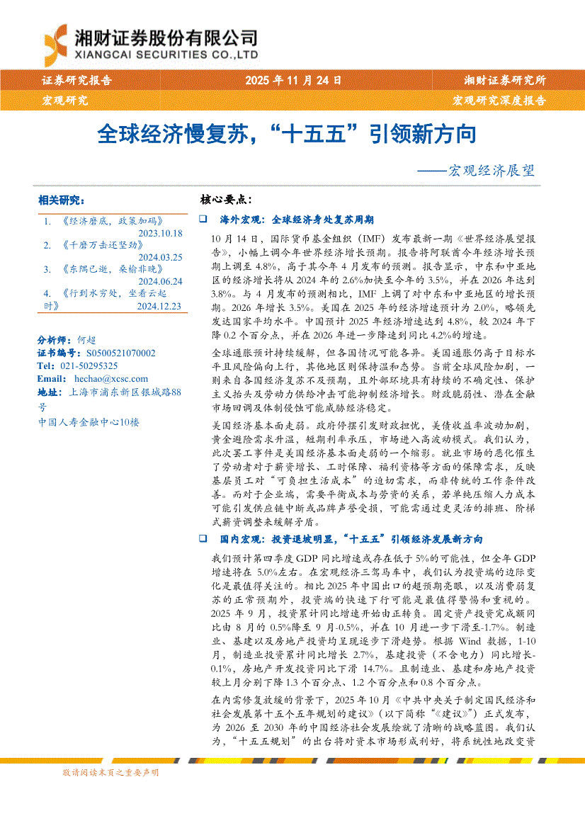 湘财证券-宏观经济展望:全球经济慢复苏,“十五五”引领新方向-251124