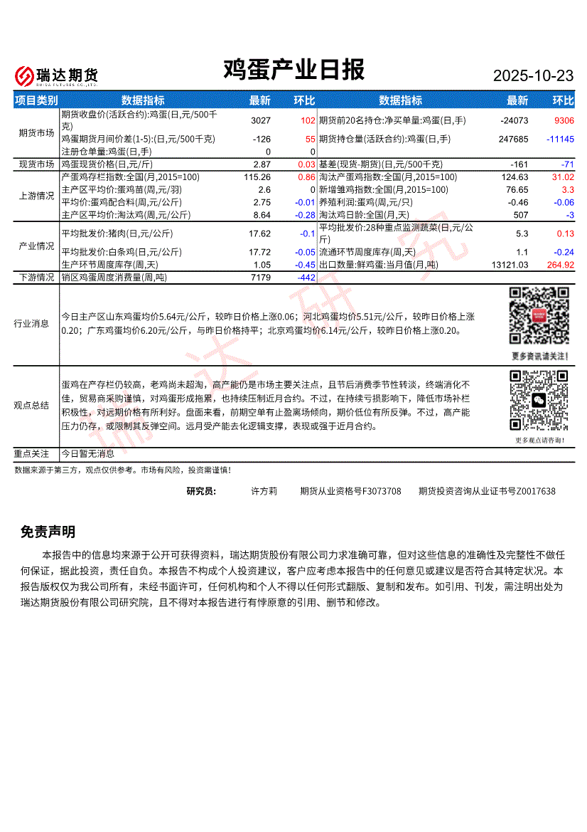 瑞达期货-鸡蛋产业日报-251023