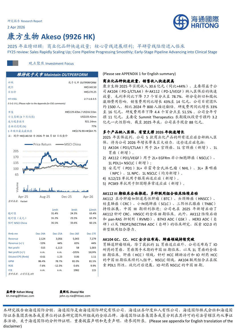 康方生物:海通国际-康方生物-9926.HK-2025年业绩回顾:商业化品种快速放量;核心管线进展顺利;早研管线陆续进入临床-260402