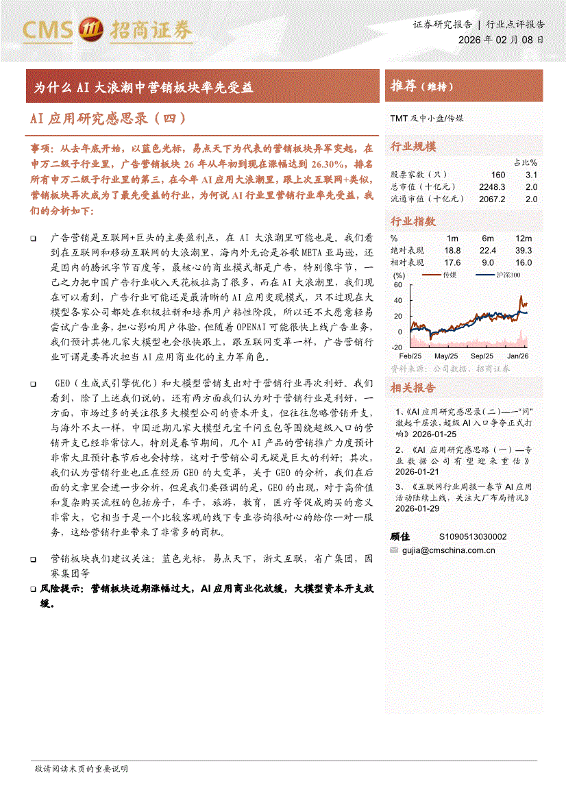 传媒行业:招商证券-传媒行业AI应用研究感思录(四):为什么AI大浪潮中营销板块率先受益-260208