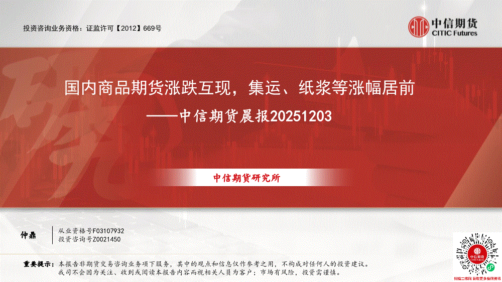 中信期货-晨报:国内商品期货涨跌互现,集运、纸浆等涨幅居前-251203