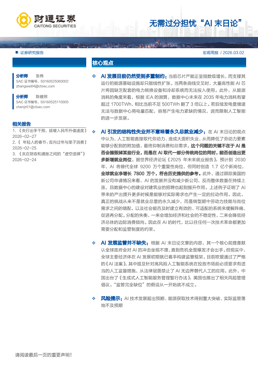财通证券-宏观周报:无需过分担忧“AI末日论”-260302