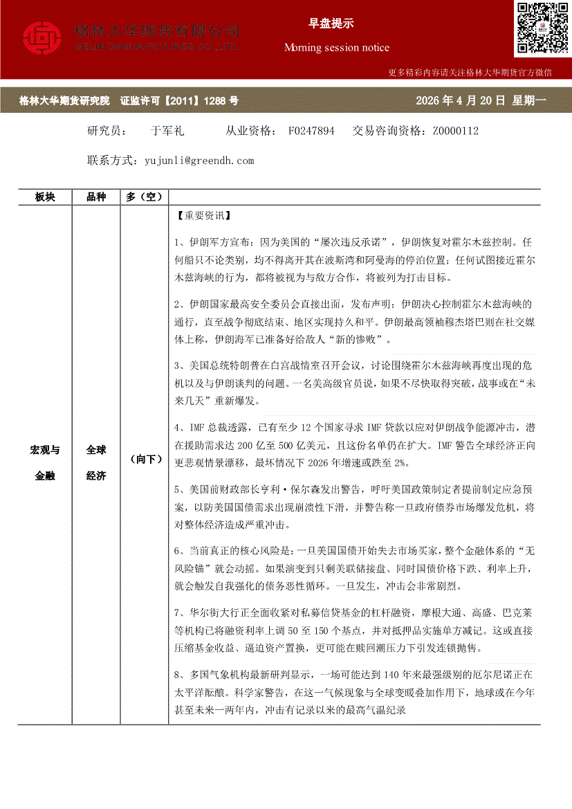 格林大华期货-大类资产周报:美式和平不可信-260417