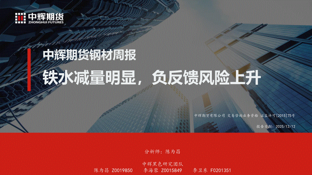 中辉期货-钢材周报:铁水减量明显,负反馈风险上升-251212