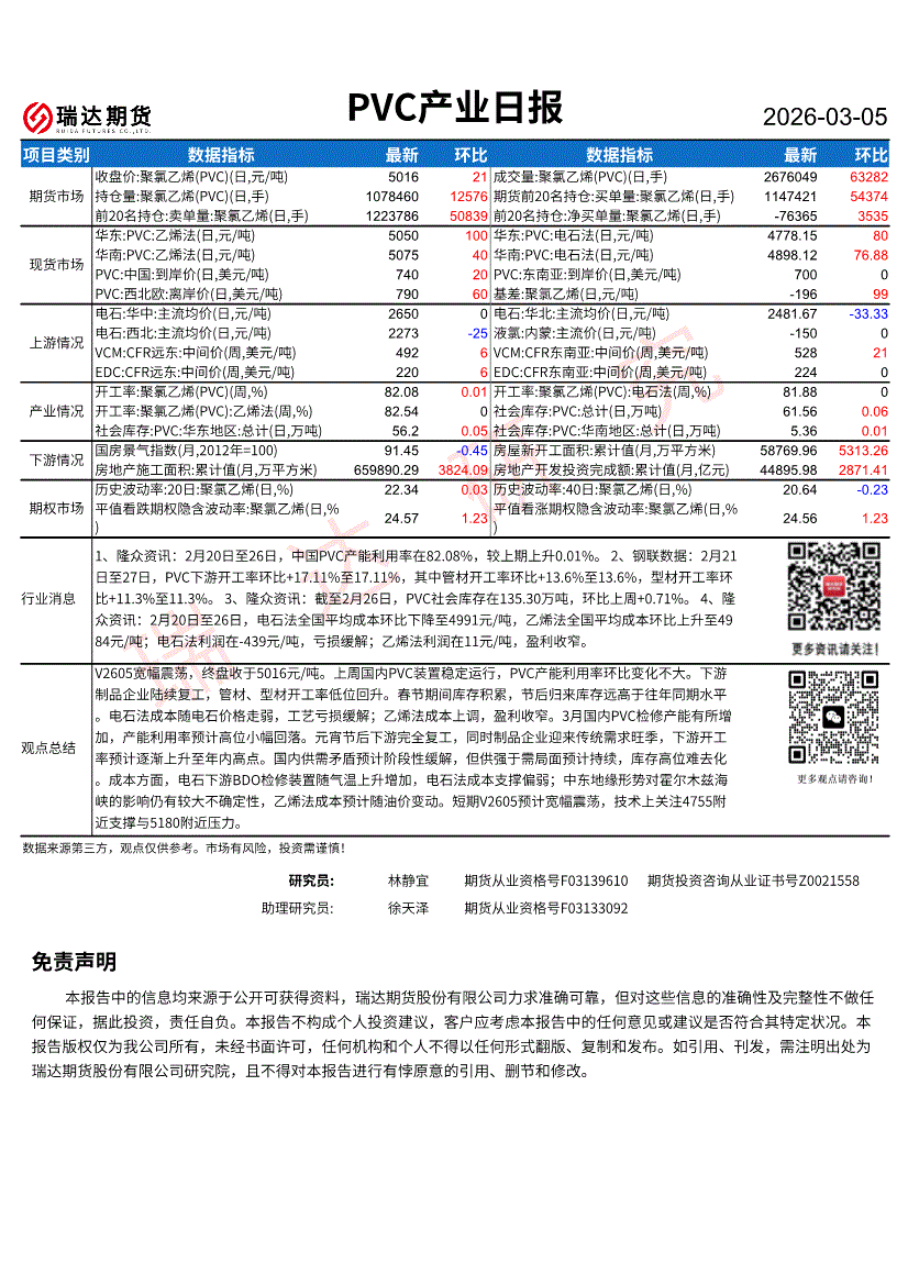 瑞达期货-PVC产业日报-260305