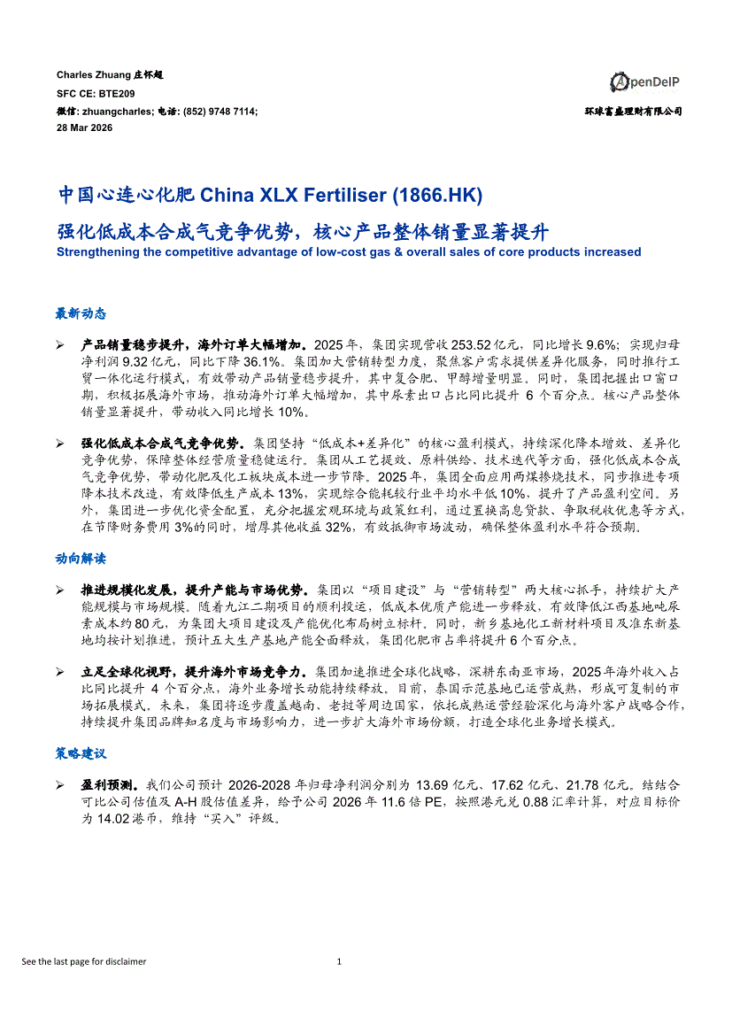 中国心连心化肥:环球富盛-中国心连心化肥-1866.HK-强化低成本合成气竞争优势,核心产品整体销量显著提升-260328